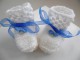 Vêtement habit bébé : Voici mon nouvel ouvrage, un ensemble bandeau-chaussons tricoté en laine Ciboulette blanc Diamant, de Bergère de France, agrémenté d'un ruban mousseline bleu, vendu à prix exceptionnel sur ma boutique en ligne (tapez Bleu blanc neige dans google)